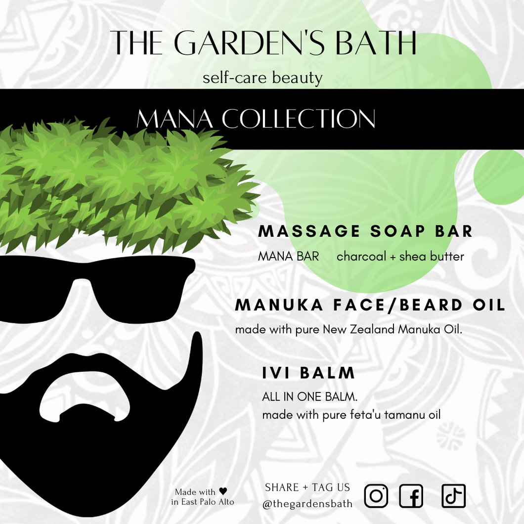 MANA is spirit. Rest and revive with this tropical spa gift. South Pacific inspired handcrafted natural soap for men paired with natural manuka oils and feta'u balm to hydrate and moisturize dry thirsty skin.